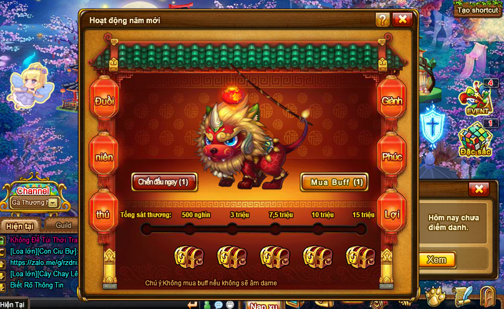 Nếu bị diss game hay lỗi gì dẫn đến mất lượt đi niên thú trong ngày vui lòng chụp ảnh bị dis rồi gửi cho admin để hỗ trợ